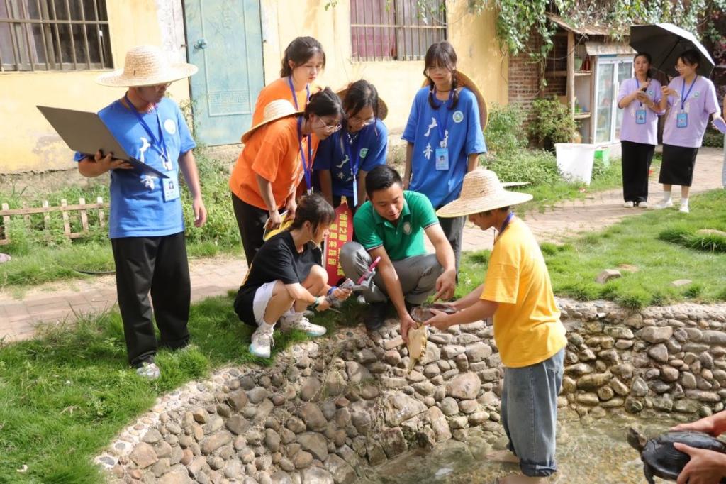 观察实践团直播科普龟、鳖种类以及溜龟活动